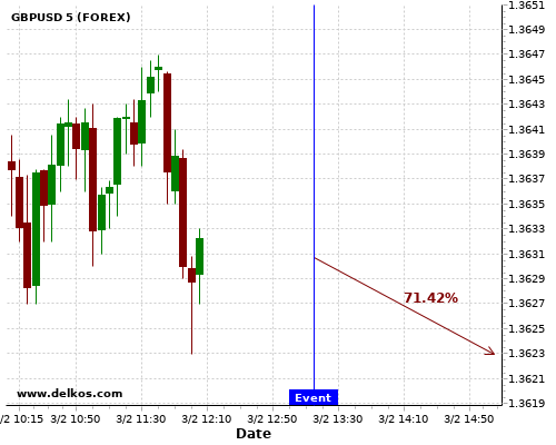 DELKOS 02/03 01:15 PM GMT将公布US ADP Employment Change的数据如果小于专家预期,GBPUSD有71.42%的可能性将下跌。