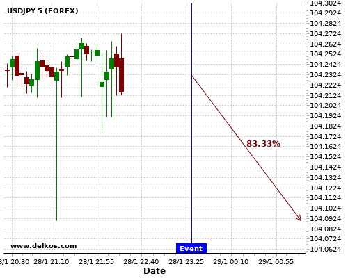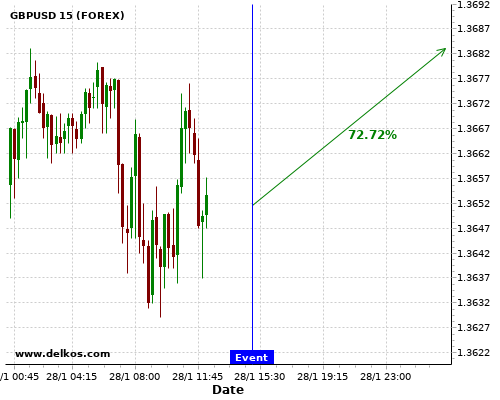 DELKOS 01/29 06:30 AM GMT将公布FR GDP Growth Rate QoQ Prel的数据如果大于专家预期,EURUSD有80%的可能性将下跌。