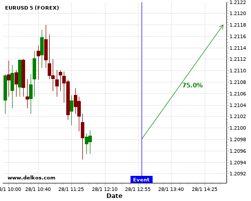 DELKOS 01/28 01:30 PM GMT将公布US Continuing Jobless Claims的数据如果大于专家预期,EURUSD有75%的可能性将上涨。