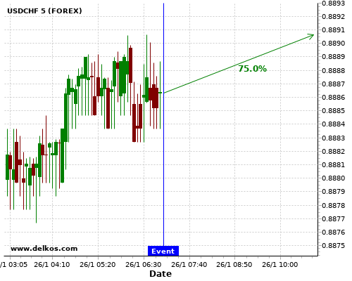 DELKOS 即时新闻: USDCHF有75%的可能性将会在接下来的几小时上涨。