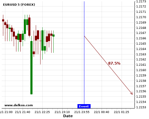 DELKOS 即时新闻: EURUSD有87.5%的可能性将会在接下来的几小时下跌。