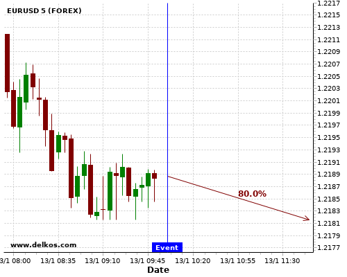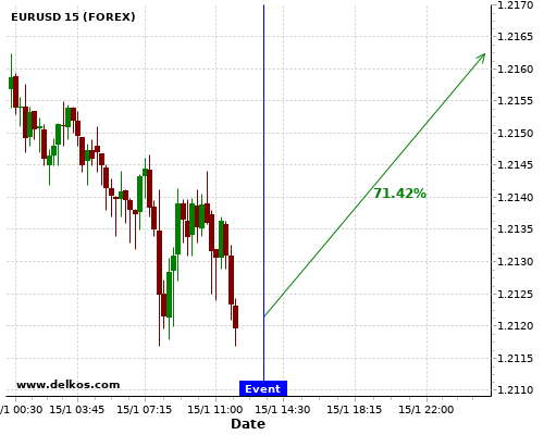 DELKOS 即时新闻: EURUSD有71.42%的可能性将会在接下来的几小时上涨。
