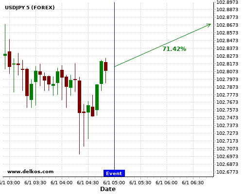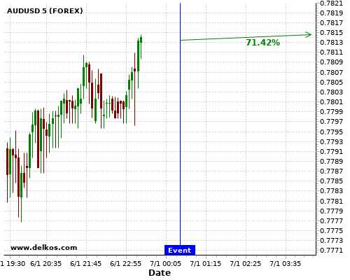 DELKOS 01/07 12:30 AM GMT将公布AU Balance of Trade的数据如果大于专家预期,AUDUSD有71.42%的可能性将上涨。