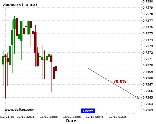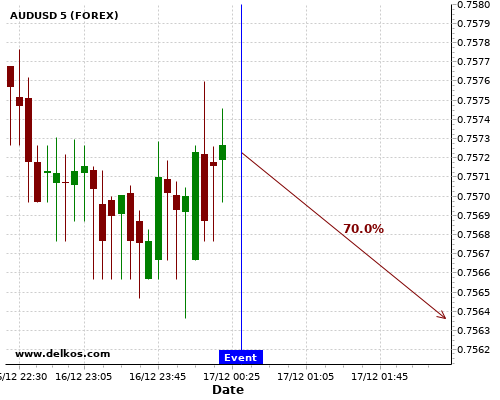 DELKOS 即时新闻: AUDUSD有70%的可能性将会在接下来的几小时下跌。