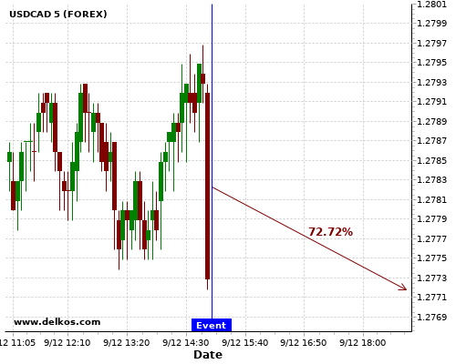 DELKOS 即时新闻: USDCAD有80%的可能性将会在接下来的几小时下跌。