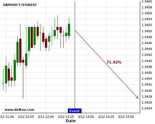 DELKOS 即时新闻: GBPUSD有71.42%的可能性将会在接下来的几小时下跌。