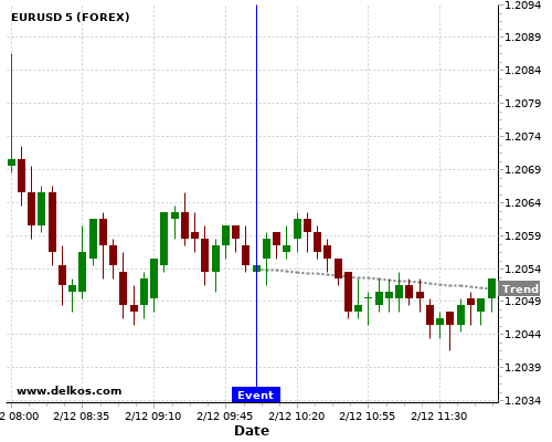 Эта вероятность основывается на последних 12 EMU Unemployment Rate события, в котором 3 из последних 4 события, где фактическое номер было равно чем экономист консенсус привел тенденция вниз для EURUSD.