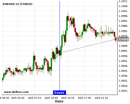 Эта вероятность основывается на последних 12 CA Inflation Rate YoY события, в котором 3 из последних 5 события, где фактическое номер было меньше чем чем экономист консенсус привел тенденция вверх для EURUSD.