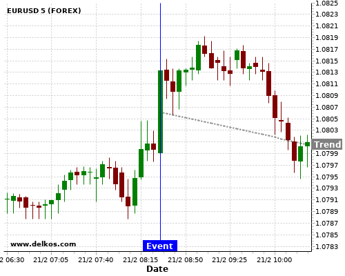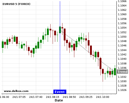 Эта вероятность основывается на последних 12 DE Markit Manufacturing PMI Flash события, в котором 5 из последних 6 события, где фактическое номер было больше чем чем экономист консенсус привел тенденция вниз для EURUSD.