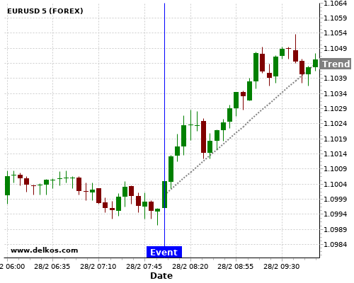 Эта вероятность основывается на последних 12 CH KOF Leading Indicators события, в котором 5 из последних 7 события, где фактическое номер было больше чем чем экономист консенсус привел тенденция вверх для EURUSD.
