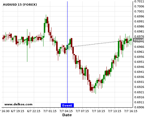 这个概率是根据最近12次公布AU RBA Interest Rate Decision数据得出的, 12次中有11次真实数据等于专家预期, 这其中有8次导致AUDUSD上涨。