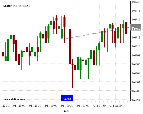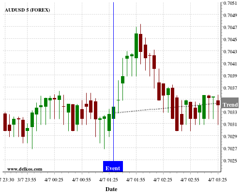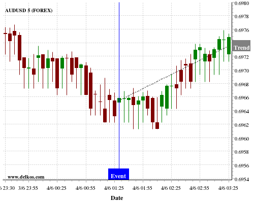 这个概率是根据最近12次公布AU Retail Sales MoM数据得出的, 12次中有8次真实数据小于专家预期, 这其中有6次导致AUDUSD上涨。