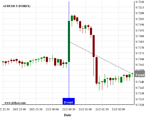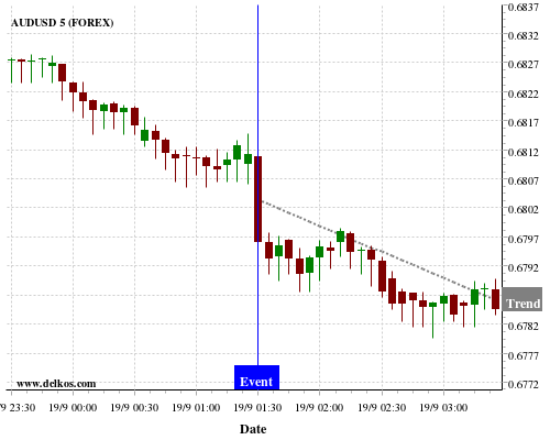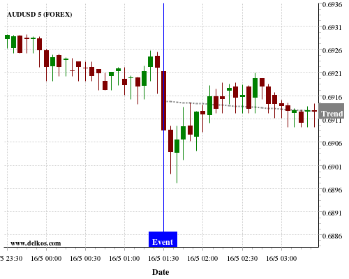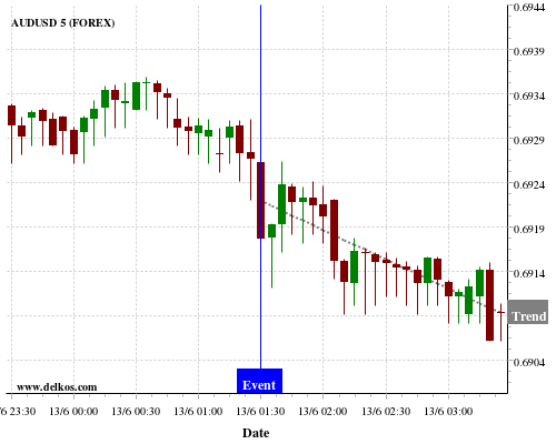 这个概率是根据最近12次公布AU Employment Change数据得出的, 12次中有8次真实数据大于专家预期, 这其中有4次导致AUDUSD下跌。