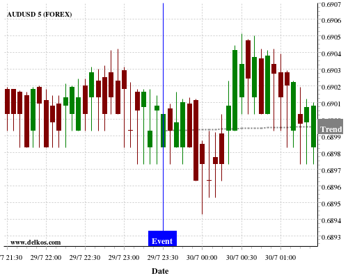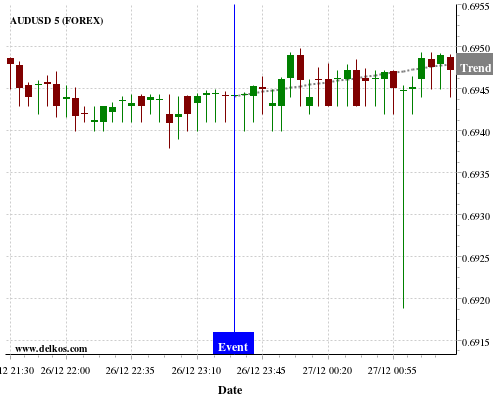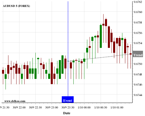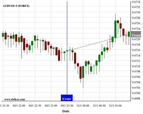 这个概率是根据最近12次公布JP Unemployment Rate数据得出的, 12次中有5次真实数据小于专家预期, 这其中有4次导致AUDUSD上涨。