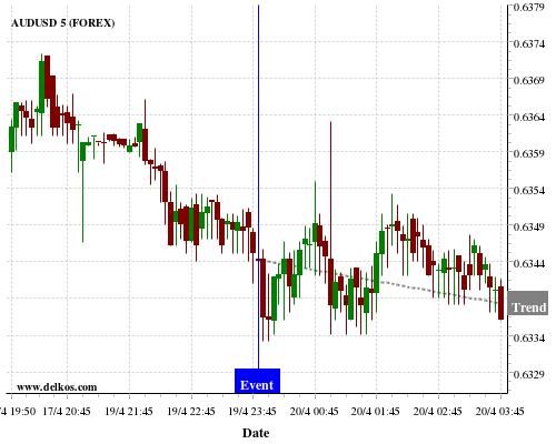 这个概率是根据最近12次公布JP Balance of Trade数据得出的, 12次中有6次真实数据小于专家预期, 这其中有4次导致AUDUSD下跌。