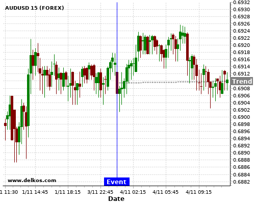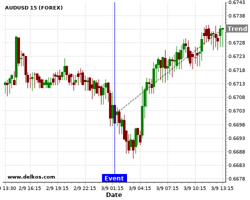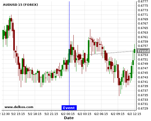 这个概率是根据最近12次公布AU Retail Sales MoM数据得出的, 12次中有6次真实数据小于专家预期, 这其中有5次导致AUDUSD上涨。