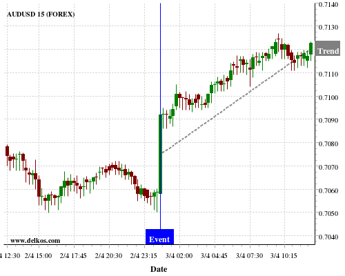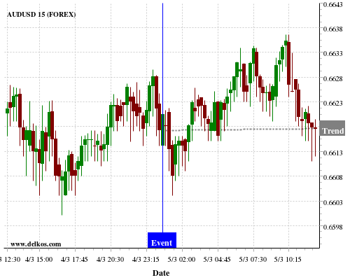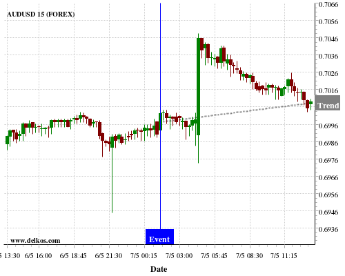 这个概率是根据最近12次公布AU Balance of Trade数据得出的, 12次中有7次真实数据大于专家预期, 这其中有6次导致AUDUSD上涨。