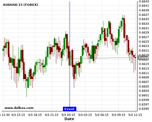 这个概率是根据最近12次公布AU Balance of Trade数据得出的, 12次中有6次真实数据大于专家预期, 这其中有5次导致AUDUSD上涨。