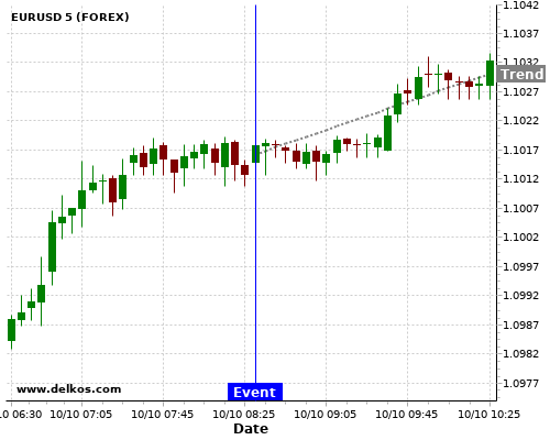 这个概率是根据最近12次公布GB Balance of Trade数据得出的, 12次中有8次真实数据大于专家预期, 这其中有6次导致EURUSD上涨。