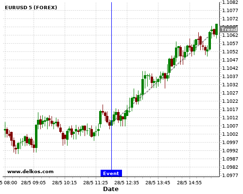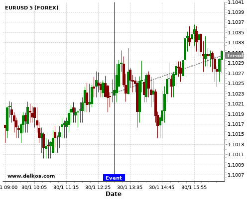 这个概率是根据最近12次公布DE Inflation Rate YoY Prel数据得出的, 12次中有4次真实数据等于专家预期, 这其中有3次导致EURUSD上涨。