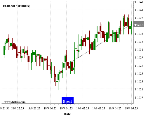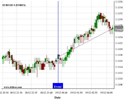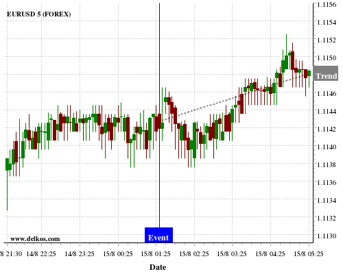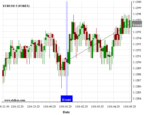 这个概率是根据最近12次公布AU Employment Change数据得出的, 12次中有8次真实数据大于专家预期, 这其中有6次导致EURUSD上涨。