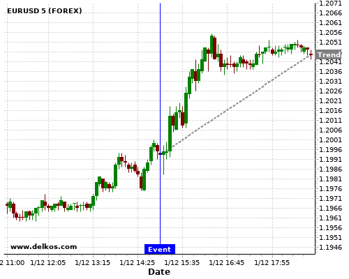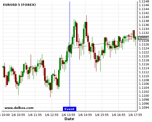 这个概率是根据最近12次公布US ISM Manufacturing PMI数据得出的, 12次中有4次真实数据小于专家预期, 这其中有3次导致EURUSD上涨。
