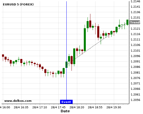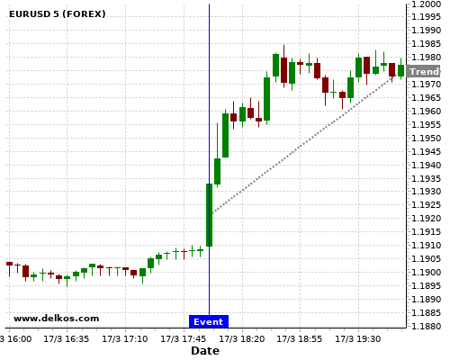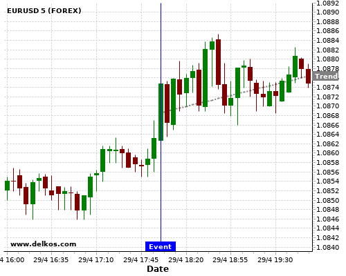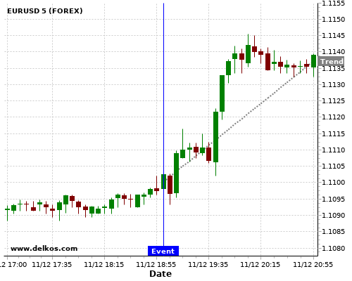 这个概率是根据最近12次公布US Fed Interest Rate Decision数据得出的, 12次中有12次真实数据等于专家预期, 这其中有9次导致EURUSD上涨。