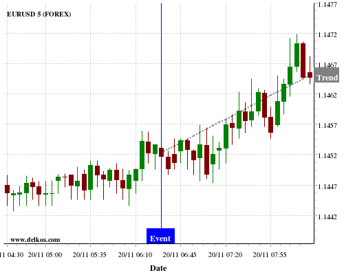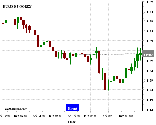 这个概率是根据最近12次公布FR Unemployment Rate数据得出的, 12次中有8次真实数据小于专家预期, 这其中有6次导致EURUSD上涨。