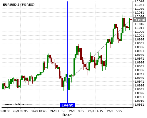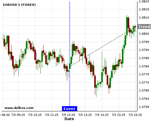 这个概率是根据最近12次公布US Continuing Jobless Claims 数据得出的, 12次中有4次真实数据大于专家预期, 这其中有3次导致EURUSD上涨。