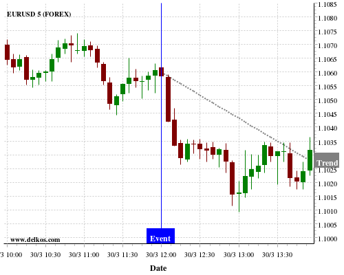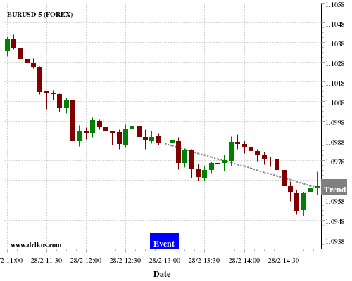 这个概率是根据最近12次公布DE Inflation Rate YoY Prel数据得出的, 12次中有4次真实数据等于专家预期, 这其中有3次导致EURUSD下跌。