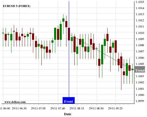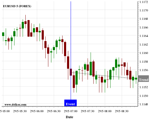 这个概率是根据最近12次公布CH KOF Leading Indicators数据得出的, 12次中有4次真实数据小于专家预期, 这其中有3次导致EURUSD下跌。