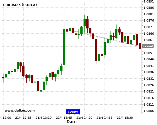 这个概率是根据最近12次公布US Existing Home Sales数据得出的, 12次中有4次真实数据小于专家预期, 这其中有3次导致EURUSD下跌。
