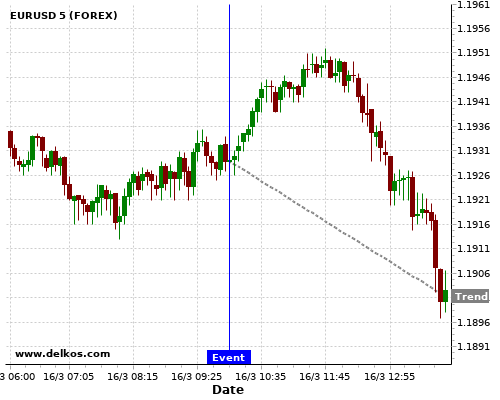 这个概率是根据最近12次公布DE ZEW Economic Sentiment Index数据得出的, 12次中有8次真实数据大于专家预期, 这其中有6次导致EURUSD下跌。