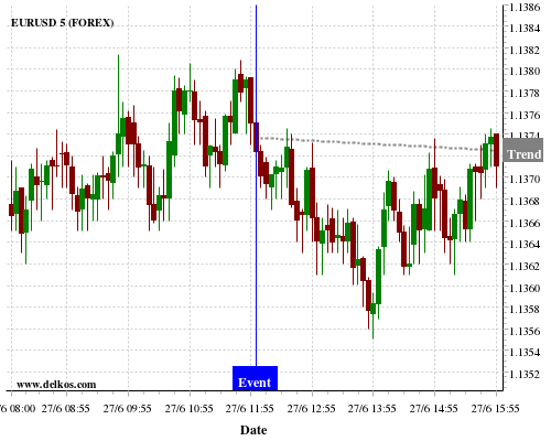 这个概率是根据最近12次公布DE Inflation Rate YoY Prel数据得出的, 12次中有4次真实数据大于专家预期, 这其中有3次导致EURUSD下跌。