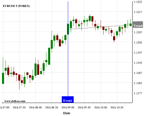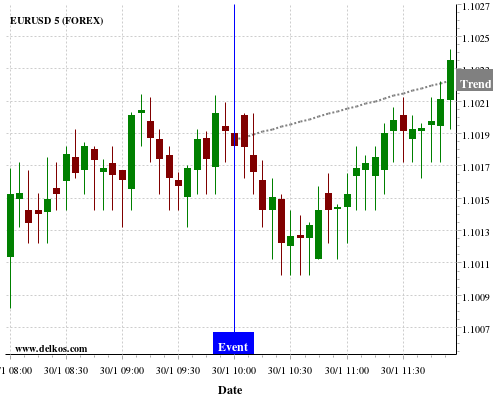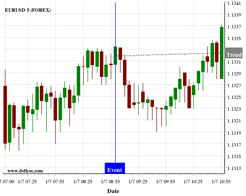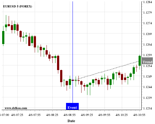 这个概率是根据最近12次公布EMU Unemployment Rate数据得出的, 12次中有5次真实数据小于专家预期, 这其中有4次导致EURUSD上涨。