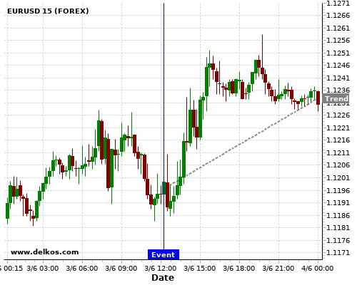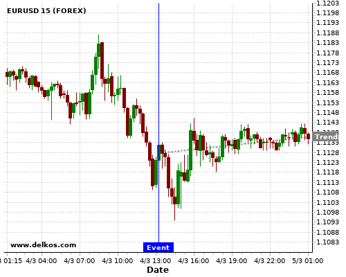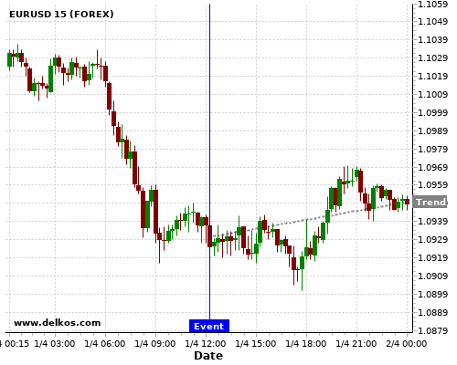 这个概率是根据最近12次公布US ADP Employment Change数据得出的, 12次中有5次真实数据大于专家预期, 这其中有4次导致EURUSD上涨。