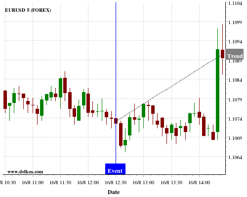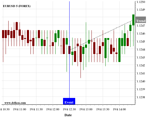这个概率是根据最近12次公布US Housing Starts数据得出的, 12次中有5次真实数据小于专家预期, 这其中有4次导致EURUSD上涨。