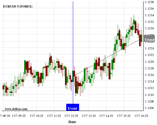 这个概率是根据最近12次公布US Housing Starts数据得出的, 12次中有5次真实数据小于专家预期, 这其中有4次导致EURUSD上涨。