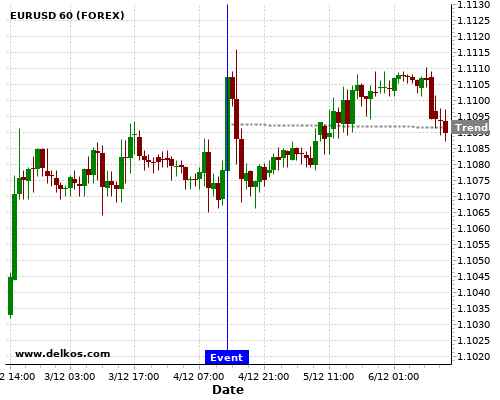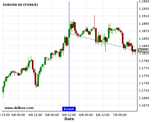 这个概率是根据最近12次公布US ADP Employment Change数据得出的, 12次中有5次真实数据小于专家预期, 这其中有3次导致EURUSD下跌。