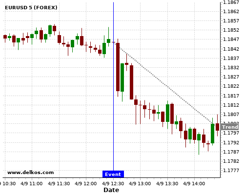 这个概率是根据最近12次公布US Non Farm Payrolls 数据得出的, 12次中有5次真实数据小于专家预期, 这其中有4次导致EURUSD下跌。