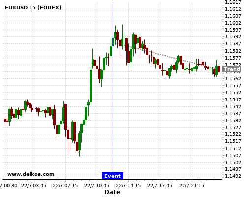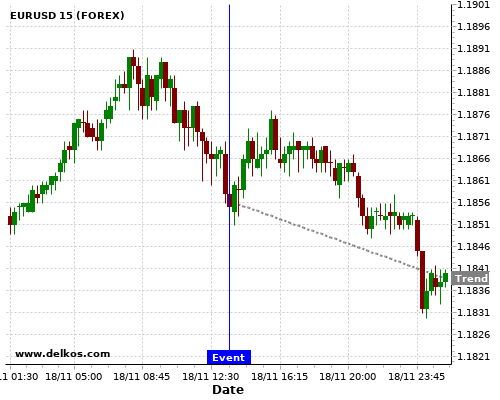 这个概率是根据最近12次公布CA Inflation Rate YoY数据得出的, 12次中有5次真实数据大于专家预期, 这其中有4次导致EURUSD下跌。