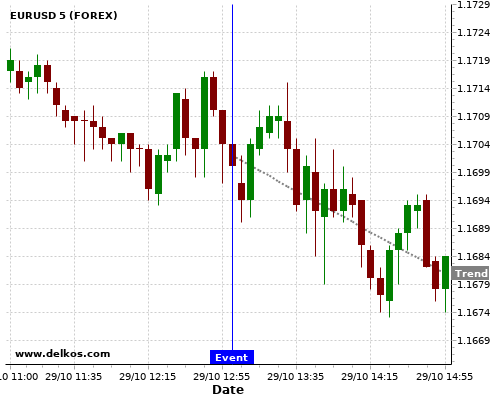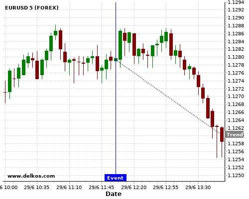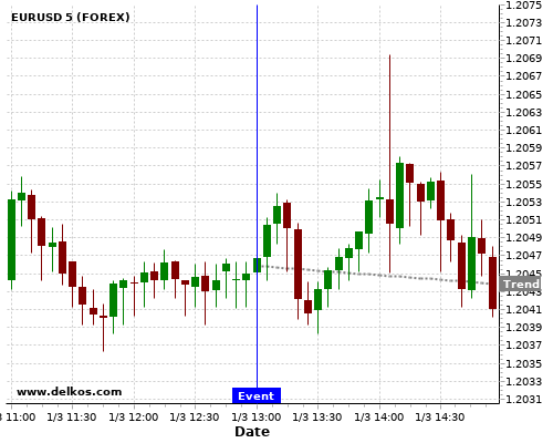 这个概率是根据最近12次公布DE Inflation Rate YoY Prel数据得出的, 12次中有5次真实数据大于专家预期, 这其中有4次导致EURUSD下跌。