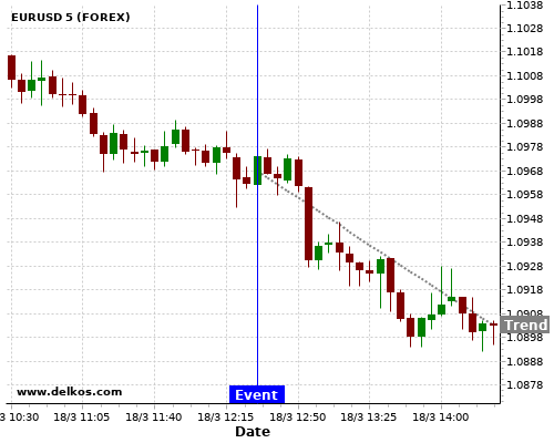 这个概率是根据最近12次公布US Housing Starts数据得出的, 12次中有5次真实数据大于专家预期, 这其中有4次导致EURUSD下跌。