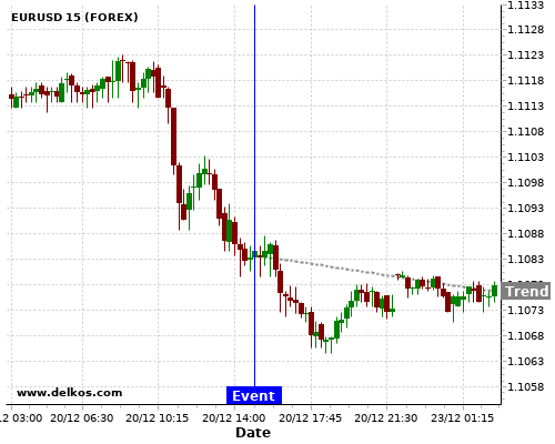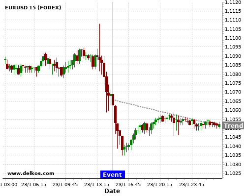 这个概率是根据最近12次公布EMU Consumer Confidence Flash数据得出的, 12次中有5次真实数据小于专家预期, 这其中有4次导致EURUSD下跌。