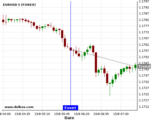 这个概率是根据最近12次公布DE GDP Growth Rate QoQ Flash数据得出的, 12次中有5次真实数据小于专家预期, 这其中有4次导致EURUSD下跌。