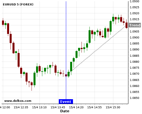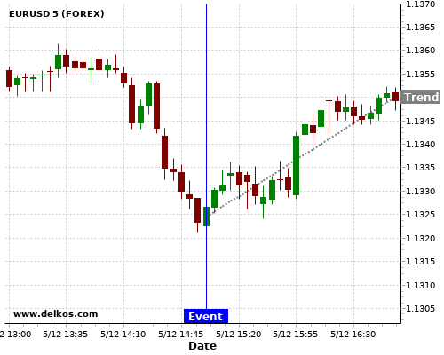 这个概率是根据最近12次公布CA BoC Interest Rate Decision 数据得出的, 12次中有11次真实数据等于专家预期, 这其中有9次导致EURUSD上涨。