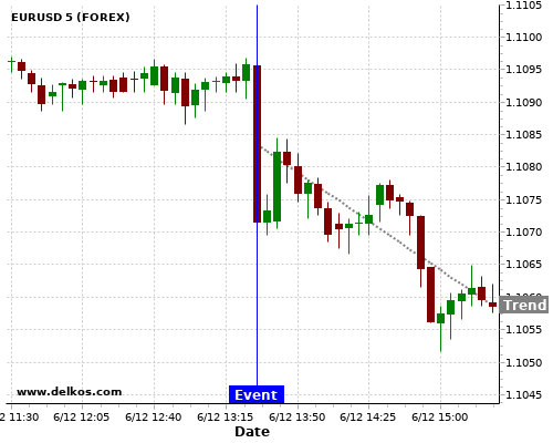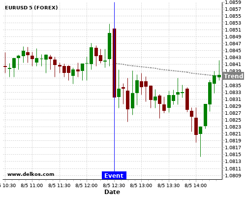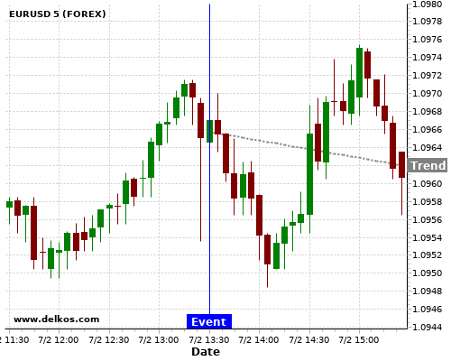 这个概率是根据最近12次公布US Non Farm Payrolls 数据得出的, 12次中有6次真实数据大于专家预期, 这其中有5次导致EURUSD下跌。