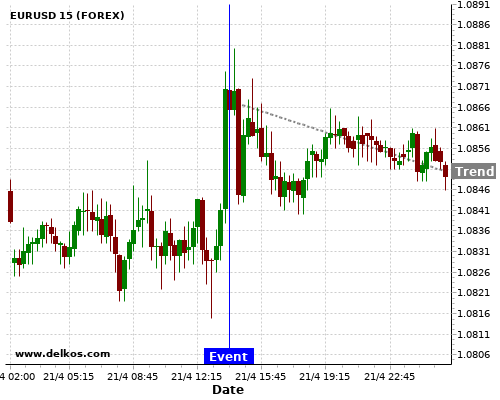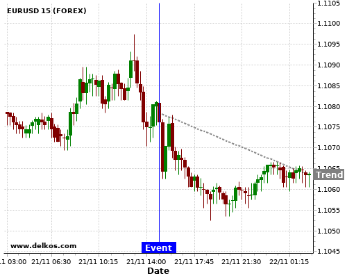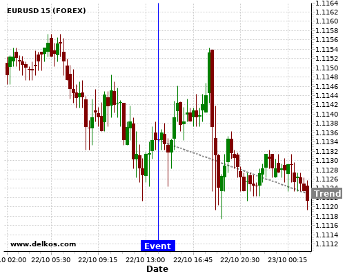 这个概率是根据最近12次公布US Existing Home Sales数据得出的, 12次中有6次真实数据小于专家预期, 这其中有5次导致EURUSD下跌。