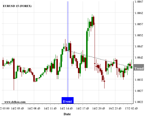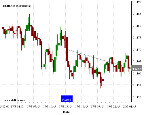 这个概率是根据最近12次公布US Michigan Consumer Sentiment Prel数据得出的, 12次中有6次真实数据大于专家预期, 这其中有5次导致EURUSD下跌。