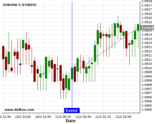 这个概率是根据最近12次公布AU NAB Business Confidence数据得出的, 12次中有6次真实数据小于专家预期, 这其中有5次导致EURUSD上涨。